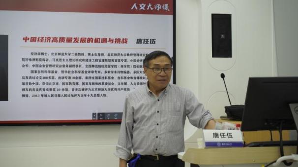 讲座中,唐任伍重点对中国高质量发展的特征进行了分析,他聚焦实体经济、新能源以及战略新兴产业,提出“五高”发展路径,即高远的价值追求、高标准的发展目标、高水平的宏观调控、高规格的对外开放以及高效的流通体系。他强调,高质量发展必须以人民为中心,把人民对美好生活的向往作为矢志不渝的奋斗目标。