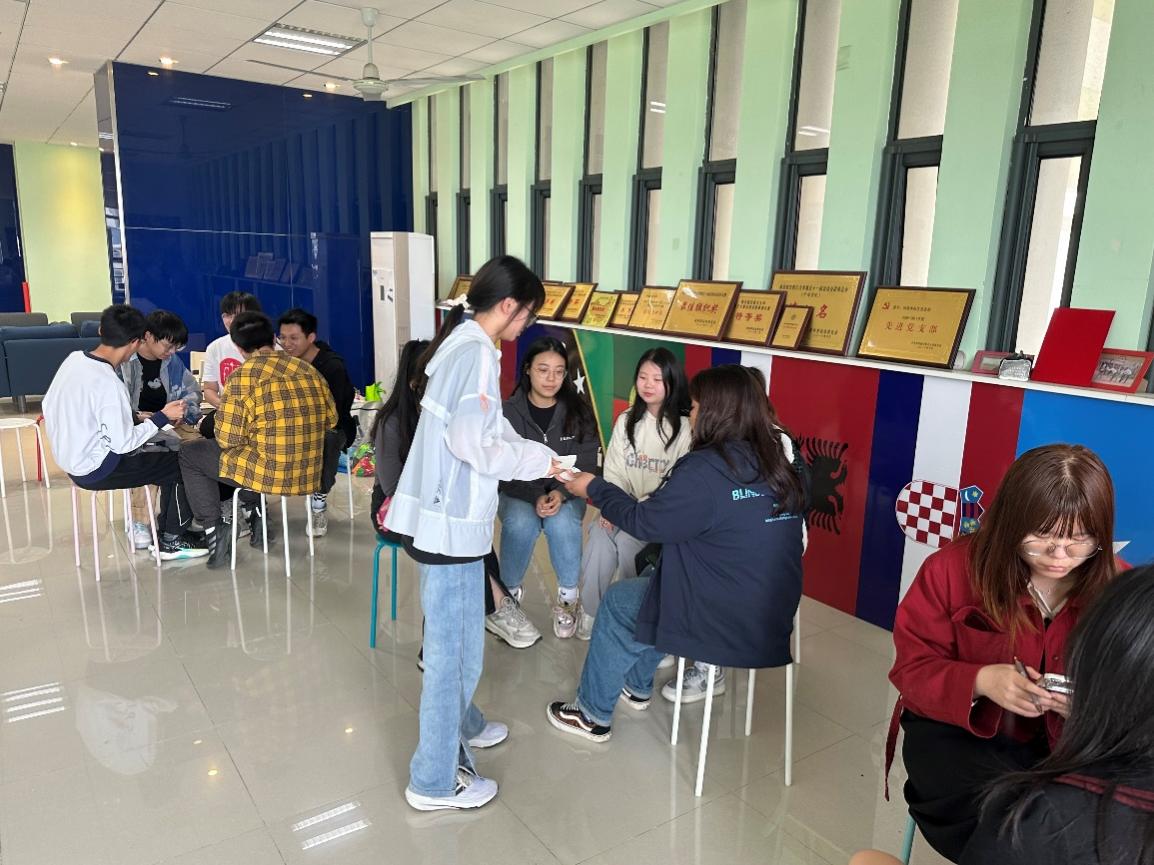 2023年4月21日下午,外国语学院1221103班在学院楼504活动室开展了“认知自我,相知一家” 心理团辅活动,旨在帮助同学们更好认识自我,拉近大家彼此间的距离。本次活动由心理委员宋佳玉主持,班级全体同学参加。
