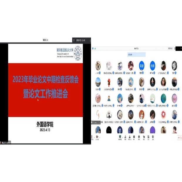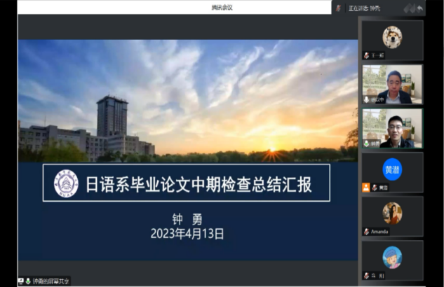 4月13日下午,外国语学院组织在线召开了2023年本科毕业论文中期检查反馈会暨论文工作推进会。学院领导、中期检查工作组的督导、系领导、教学办管理人员,指导老师和全体毕业生共100多名师生参加了会议,副院长徐以中教授主持会议。