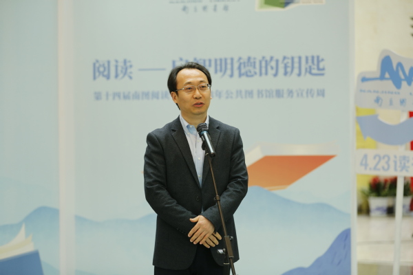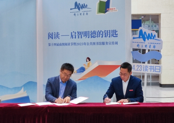 4月23日上午,第十四届南图阅读节暨2023年公共图书馆服务宣传周活动开幕式在南京图书馆一楼大厅举行。长空学院副院长张林、院长助理王瑞瑒出席开幕式,并与南京图书馆签署合作共建协议书。