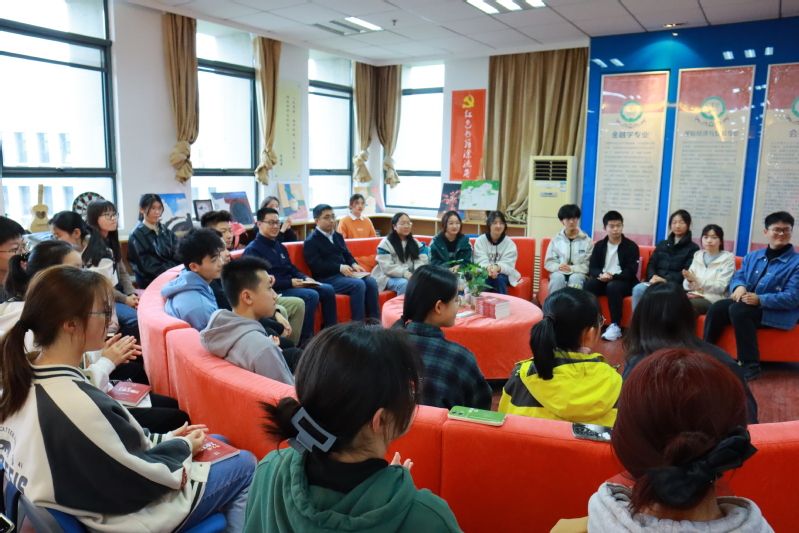 山河芳菲四月天,正是读书好时节。4月23日下午,在第28个世界读书日到来之际,为落实党的二十大关于深化全民阅读的重要部署,经济与管理学院于学院楼512图书馆,进行“芳华书汇”启动仪式暨首场读书分享会活动。学院院长王群伟,管工系教师虞先玉,辅导员代表王康宇、陈思华,学院2022级管理科学与工程大类学生代表参加本次活动。活动由2022级本科生辅导员张延波主持。