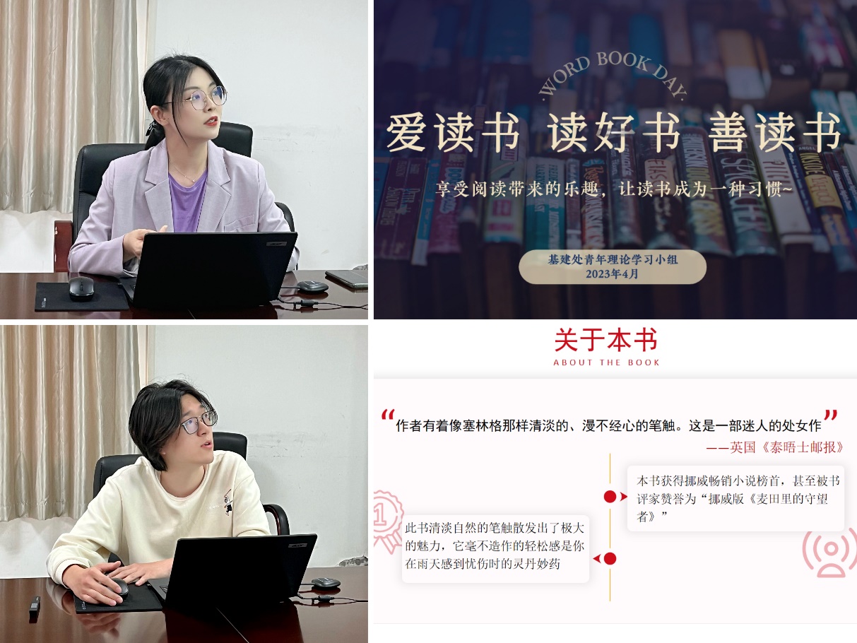 下一阶段,基建处青年理论学习小组将继续以阅读为媒,以书为纽带,以文化活动为推手,办好“读书分享会”,积极打造青年读书品牌,全面提升基建青年素质,持续推进“学习型”小组建设,让“悦”读为履职赋能增效,凝共识、集众智、聚群力,不断推动基建处高质量内涵式发展,助力学校书香校园建设。