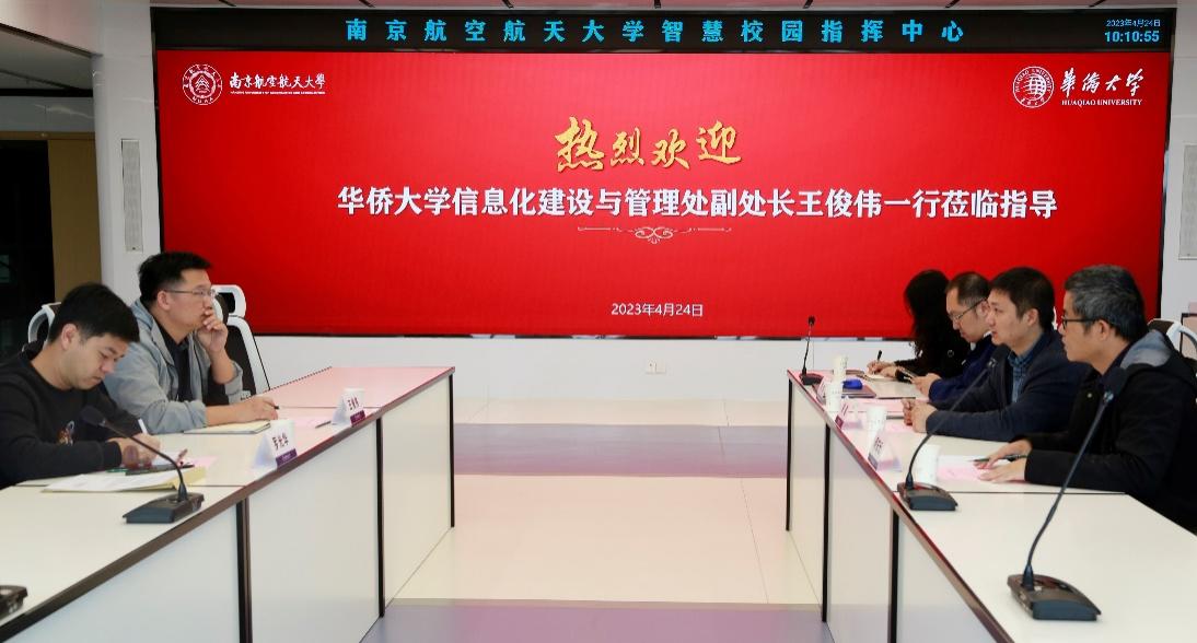 4月24日,华侨大学信息化建设与管理处副处长王俊伟带队到我校调研信息化工作,信息化处副处长谢健及相关科室负责人参会。会议由谢健主持。