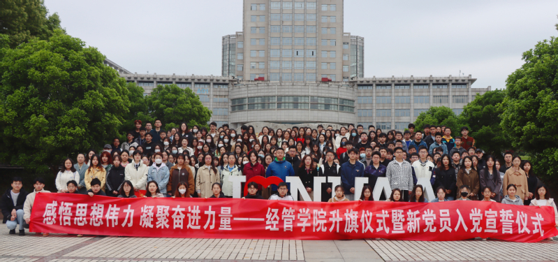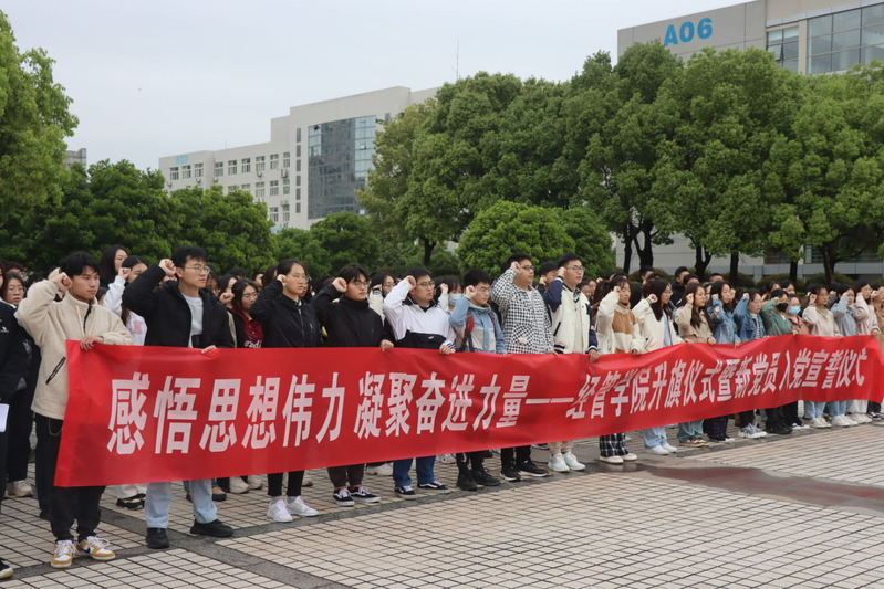 为深入开展习近平新时代中国特色社会主义思想主题教育,经济与管理学院于4月24日在国旗广场举行“感悟思想伟力 凝聚奋进力量”升旗仪式暨新党员入党宣誓仪式。学院党委副书记胡苹、辅导员代表、全体学生党员、发展对象、入党积极分子参加活动。