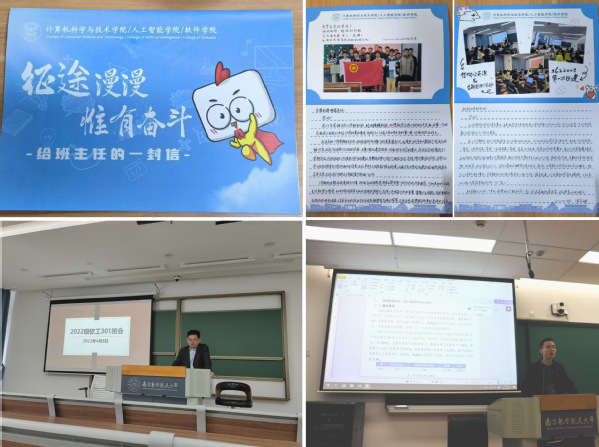 “一封来信,让我感受到师生间的双向奔赴。”学院低年级学生入学后在天目湖校区就读。地缘分离,但教学不能分离。班主任们坚持往返于两校区,参与学生入学后的每个成长阶段,为同学们适应大学生活护航。老师们的辛勤付出得到同学们的积极回应。学期初,同学们以手写信的形式记录了与老师相处的点滴,主动向老师汇报新学期以来的成长与困惑。班主任们也迅速响应,召开“开学第一课”主题班会,邀请高年级学导与学生开展大讨论活动,围绕学生困惑与同学们谈心交心,引导学生以良好的心态在新学期积极适应新任务、迎接新挑战。