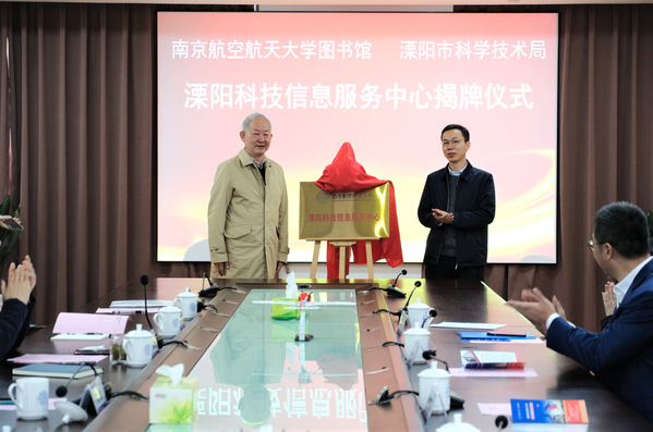 随后,双方签署科技信息服务战略合作框架协议,并为“南京航空航天大学溧阳科技信息服务中心”揭牌。中心将充分发挥科技产业信息、科技人才信息、科技创新信息等方面的资源优势,拓展高校为企业提供深层次信息服务和应用对接渠道,为溧阳市相关单位在创新发展方面科学决策提供支撑。