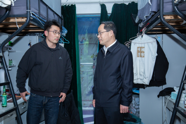 单忠德随后来到食堂、学生宿舍、校医院等地,看望慰问了食堂工作人员、学生和医生,详细了解灭火器配备、医疗条件、留样管理、宿舍卫生环境等方面情况,并与大家亲切交流,叮嘱师生员工进一步强化安全意识,始终坚持安全高于一切,真正让安全发展的理念入脑入心,以实际行动营造良好的校园安全环境,为推动学校高质量内涵式发展提供安全保障。