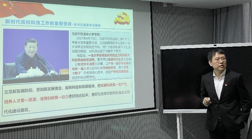 材料科学与技术学院院长顾冬冬带领学习近平总书记在中央政治局第三次集体学习时关于切实加强基础研究夯实科技自立自强根基的重要论述。他指出,加强基础研究是科技创新的源头,是新时代高校科技工作的重要使命,是实现高水平科技自立自强的迫切要求,是建设世界科技强国的必由之路。他还重点结合学习就如何推动学校“理科卓越工程”深入实施,如何加快基础学科融合发展和学院联动发展分享了自己的思考和展望。