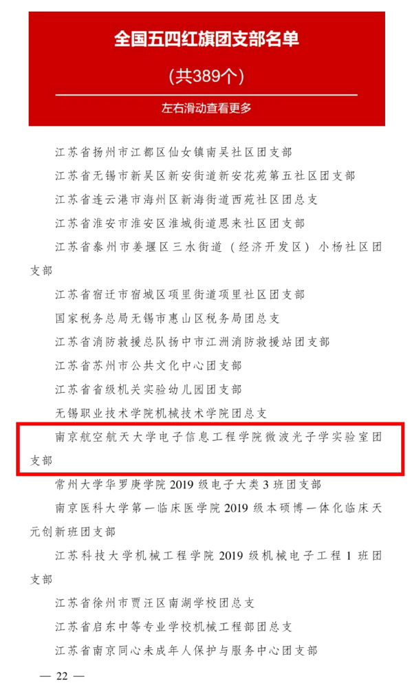 在全国“两红两优”表彰中,电子信息工程学院/集成电路学院微波光子学实验室团支部荣获2022年度“全国五四红旗团支部”荣誉称号,这是我校第三年蝉联该奖项。“全国五四红旗团支部”是共青团中央授予基层团支部的最高荣誉,是新形势下全面推进团的基层组织建设、活跃基层团工作的重要载体。