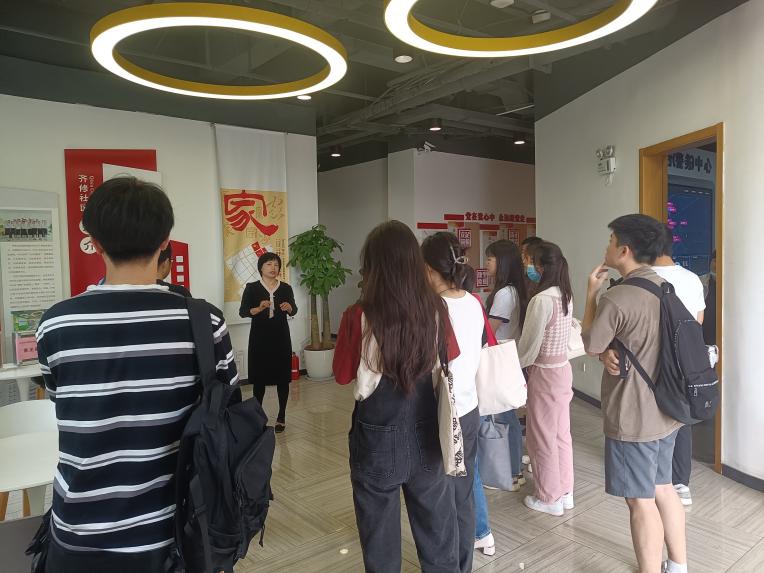 齐修社区党支部书记张福兰对学院师生的到来表示热烈欢迎,她介绍了社区的特色服务项目以及近年来社区各项工作取得的成绩。社区坚持党建引领,汇聚党员、网格员、物业公司、社会组织等多方力量共同发力,努力打造“齐修社区红色集结号”。同时,社区运用数字化信息技术,建立了“社区大数据信息库”,搭建智能化网格服务管理平台等,不断提升服务能力与水平。