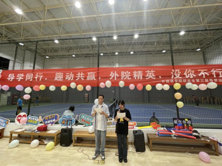 为营造有爱、互动、奋进的导学关系,丰富外国语学院师生课余生活,外国语学院于5月5日在将军路校区西区体育中心举办“导学同行·趣动共赢”第三届研究生导学运动会。外国语学院副院长徐以中、学院党委副书记吴科颖,教师代表孙睿超、钟勇、王瑞暘、钱菁参加此次运动会,老师们与研究生们团结协作、勇争桂冠,点燃青春的热情和活力,增进了师生间的凝聚和联系。