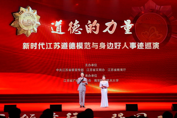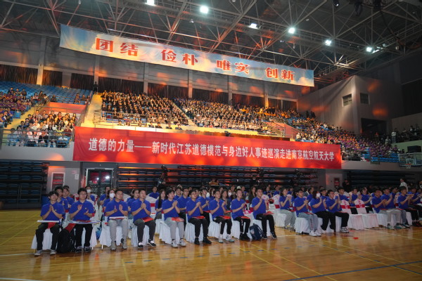在全党深入开展学习贯彻习近平新时代中国特色社会主义思想主题教育之际,5月6日,由中共江苏省委宣传部、江苏省文明办、江苏省教育厅主办的“道德的力量”——新时代江苏道德模范与身边好人事迹高校巡演首站走进南京航空航天大学,本场演出由江苏省广播电视总台和我校共同承办。
