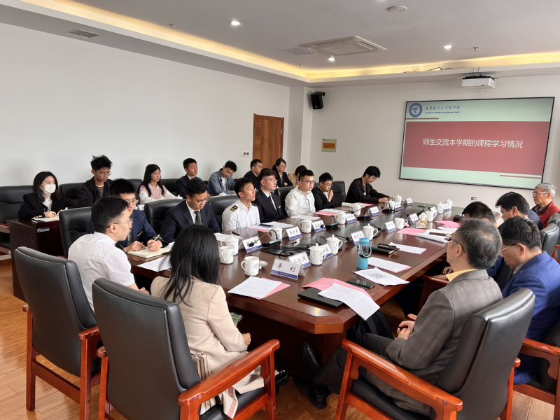第一环节是师生交流本学期的课程学习情况。与会学生代表对课堂教学、专业建设、就业前景、教学场地、科研设备等方面提出了问题和建议。飞行技术专业负责人丁松滨、交通运输(民航机务工程)专业负责人陈果、飞行技术系黄幼、安全工程系王海飞就同学们提出的问题予以耐心解答,魏慧冬对学生作风建设和学生管理规章制度方面问题和学生进行交流,张洪海就研究生专业学习、科研项目、行业实践等方面进行了介绍。