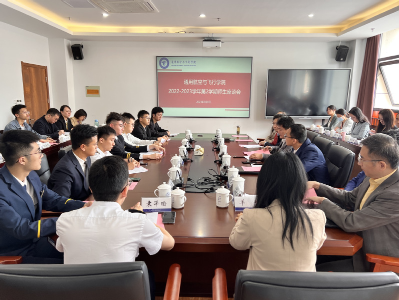 2023年5月8日上午,通用航空与飞行学院在天目湖校区综合服务楼204会议室召开2022~2023学年第二学期课堂教学师生座谈会。学院党委副书记魏慧冬、副院长司海青、张洪海,学院教学督导组组长唐正飞、专业负责人、系部负责人、任课教师代表、辅导员代表、飞行技术管理办公室代表、教学办,在校本科生、研究生、飞行实训返校学生代表参加了本次座谈会,会议由副院长司海青主持。