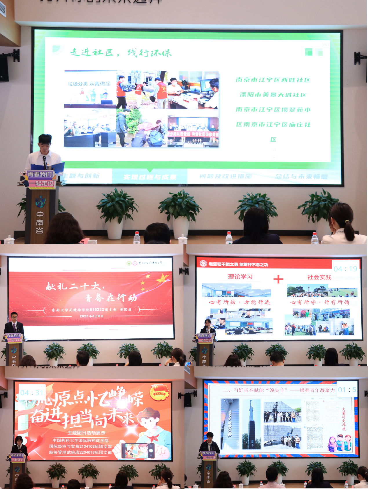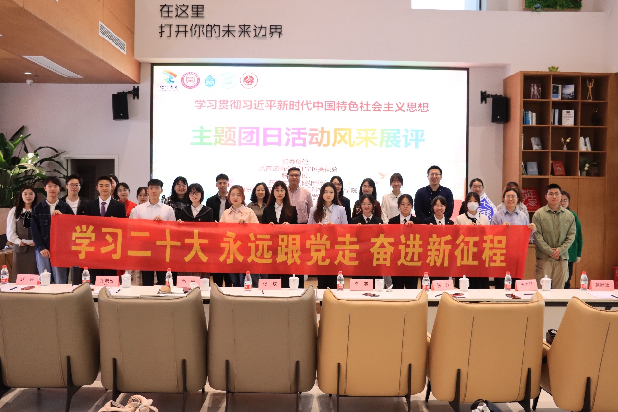 5月6日,计算机科学与技术学院/软件学院/人工智能学院联合东南大学吴健雄学院、河海大学大禹学院、中国药科大学国际医药商学院在江宁区中南谷创新中心举办学习贯彻习近平新时代中国特色社会主义思想主题团日活动风采展评。河海大学大禹学院党委书记李英、中国药科大学国际医药商学院党委副书记杨庆、江宁团区委学少部部长陈蓉、江宁教育局团工委书记高原、四校各学院团委书记及团干部代表参加本次活动。