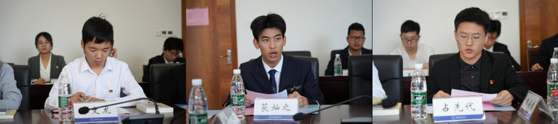 来自三个学院的学生代表章文龙、占先代、苌灿之结合自身学习成长经历,分别围绕支部理论学习、学生工作开展、个人素质提升、涵养爱国情怀等分享了自身心得体会,认为青年学生应当加强理论学习,树立终身学习意识,坚定不移听党话、跟党走,努力成长为德智体美劳全面发展的社会主义建设者和接班人。