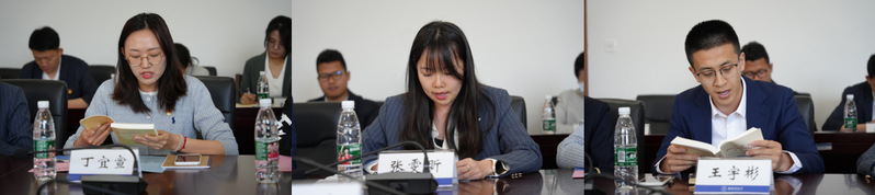 航空学院辅导员丁宜宣、机电学院辅导员张雯昕、通飞学院辅导员王宇彬分别领读《习近平新时代中国特色社会主义思想学习纲要(2023版)》《习近平关于调查研究论述摘编》《习近平新时代中国特色社会主义思想专题摘编》等有关内容,全体参学人员共同读原著、学原文、悟原理,谈认识、谈体会,从习近平新时代中国特色社会主义思想中感悟思想伟力、汲取真理力量。