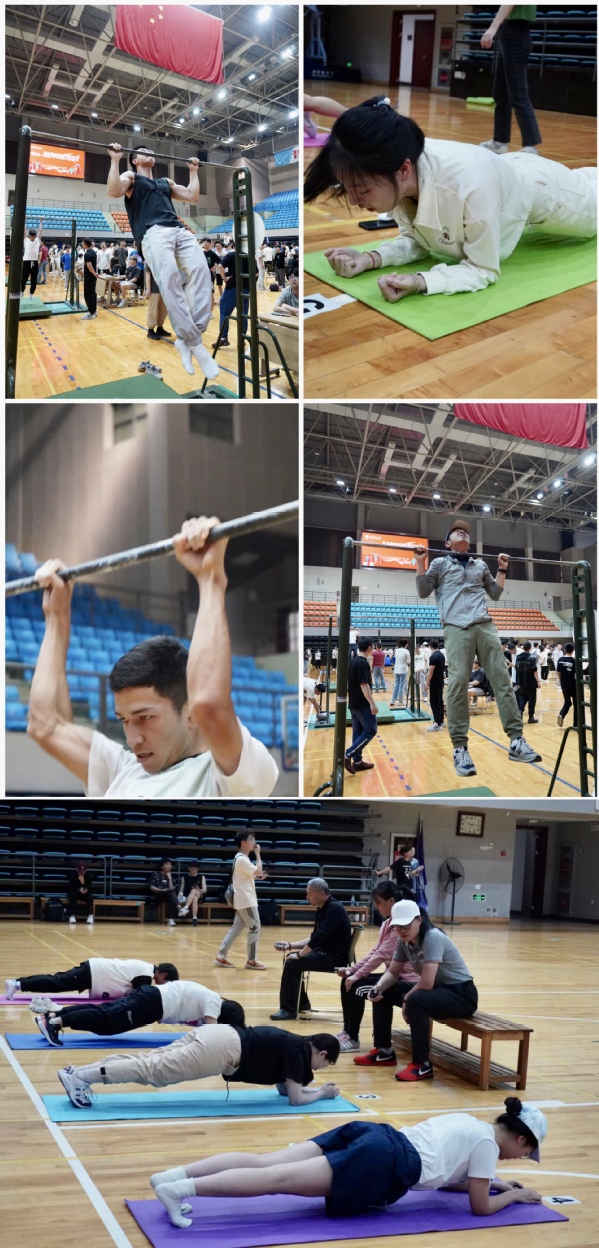 本次比赛分为教工组、学生组两个组别,设置男子引体向上与女子平板支撑两个项目,师生报名异常热烈,参赛人数共五百余人,其中男子400余人、女子100余人。