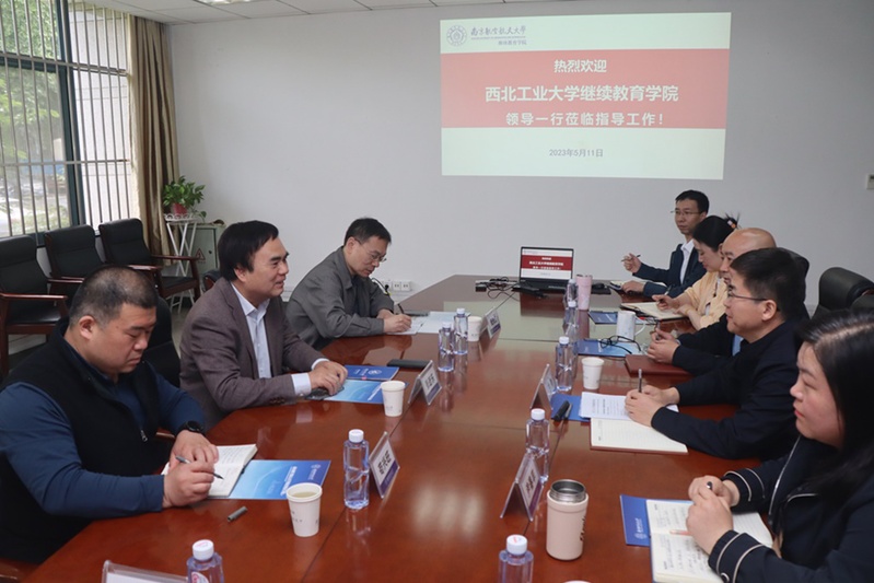 刘建成对张近乐院长一行表示热烈欢迎,他希望通过本次交流能加强双方的校级合作、增进交流学习。王伟就学院概况、办学情况、现状分析、规划设想四个方面介绍了学院办学情况。张近乐介绍了西北工业大学继续教育的发展情况、办学经验及非学历发展模式。