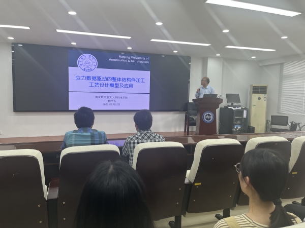 杨吟飞教授以“应力数据驱动的整体结构件加工工艺设计模型及其应用”为主题,首先介绍了整体结构件加工的研究背景,面向输入应力波动、过程非线性等导致的整体构件轮廓度精确稳定控制难题,围绕整体构件毛坯内应力和加工残余应力测量技术、批产复杂波动初始应力评估和抗波动工艺设计技术、稳定批产的关键工艺结构和加工路径技术、面向确定轮廓度的工装定位设计和夹紧控制技术等方面提出解决方案,实现加工顺序、余量、路径等工艺流程的优化设计,并深入浅出地介绍了相关技术在航空航天构件加工的应用情况。杨吟飞教授还同与会教师与学生们展开了深入的交流,就先进制造技术未来前沿方向与最新发展动态进行了指导和讨论。本次学术报告增进了机械学科青年教师对我校在航空航天装备先进制造领域的认识和了解,同时为我校机电学院营造了良好的学术氛围,促进了各专业的合作交流。