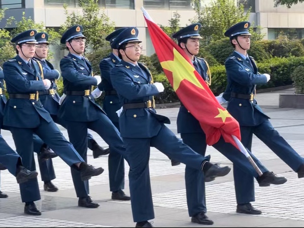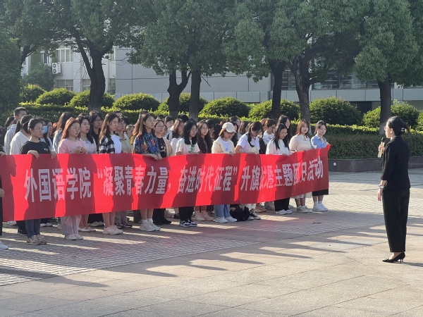 为深入学习贯彻党的二十大精神和校第十七次党代会精神,落实全校学习贯彻习近平新时代中国特色社会主义思想主题教育要求,5月15日,外国语学院在将军路校区国旗广场举行“凝聚青春力量,奋进时代征程”升旗仪式暨主题团日活动,外国语学院党委副书记吴科颖、辅导员曹文清和2022级全体本科生参加本次活动,活动由王嘉玚主持。