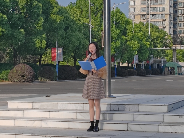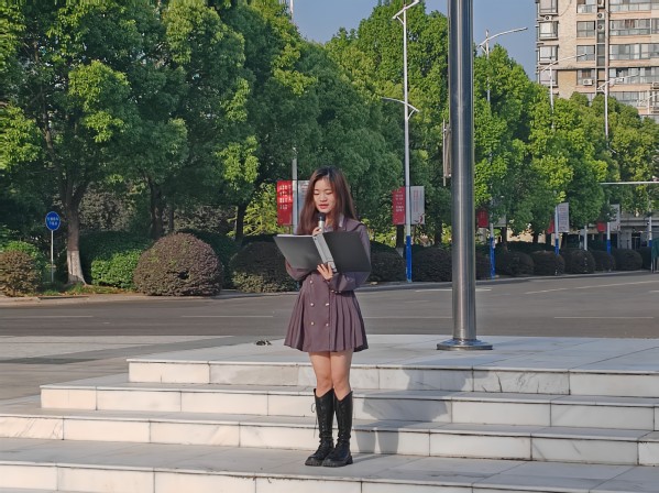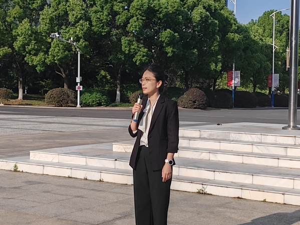 以青春之我,谱写奋斗之歌。江苏省优秀共青团员苏露从蓄底气、强志气、接地气三个方面作国旗下主题分享,她结合自身的学习经验指出,外语专业和非外语专业的主要不同在于异国文化的积淀以及国际视野的培养,她号召低年级的学弟学妹们多读外文原著,多了解国际时事热点,培养思辨能力和对外交流能力,形成独特的竞争力;同时,她鼓励同学们勇于试错,面向实际深入实践,将课堂学习和实践紧密结合起来,积极加入Mr.China暑期社会实践团队,成为通晓国际规则、接轨世界潮流、服务国家战略的复合型人才。