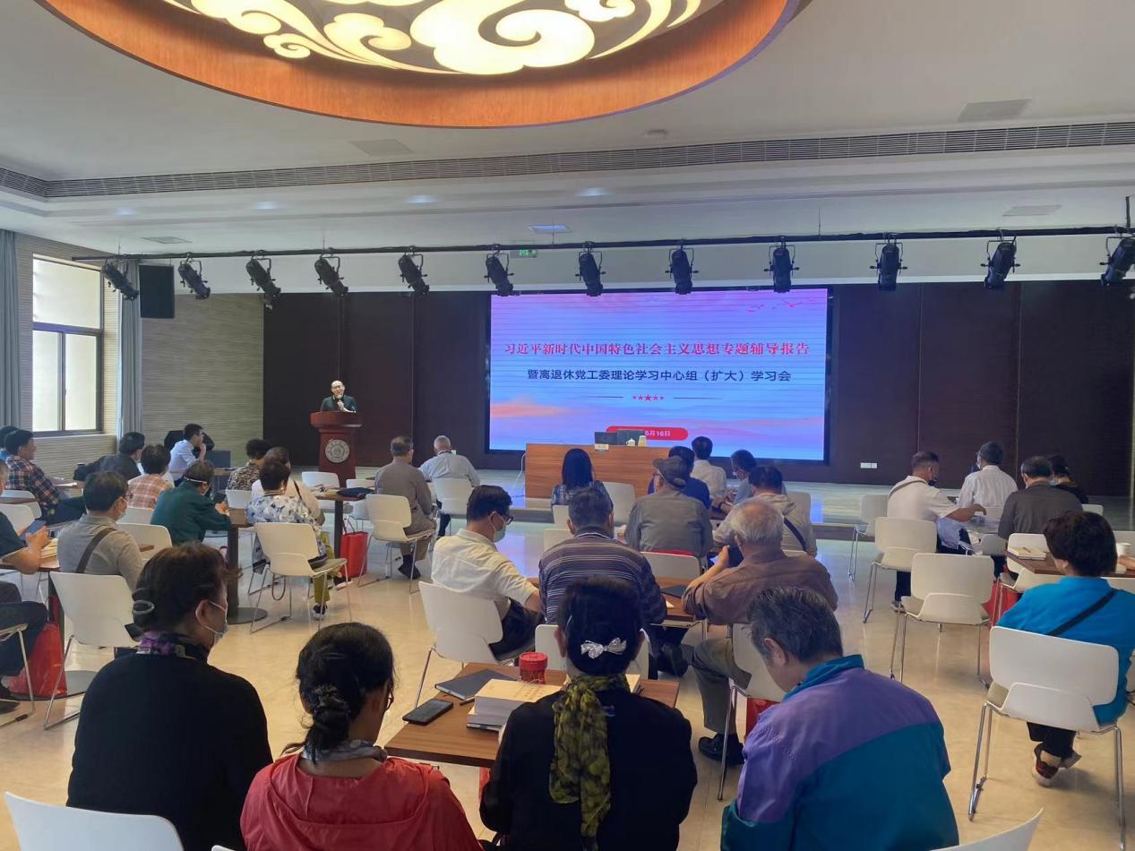 为深入开展学习贯彻习近平新时代中国特色社会主义思想主题教育,离退休党工委于5月16日上午举办党工委理论学习中心组 (扩大) 学习会,邀请党的二十大代表、马克思主义学院党委书记徐川做专题辅导报告。离退休党工委委员、学校老年群团组织负责人、各离退休党支部委员六十余人参加学习。会议由离退休党工委书记方正主持。