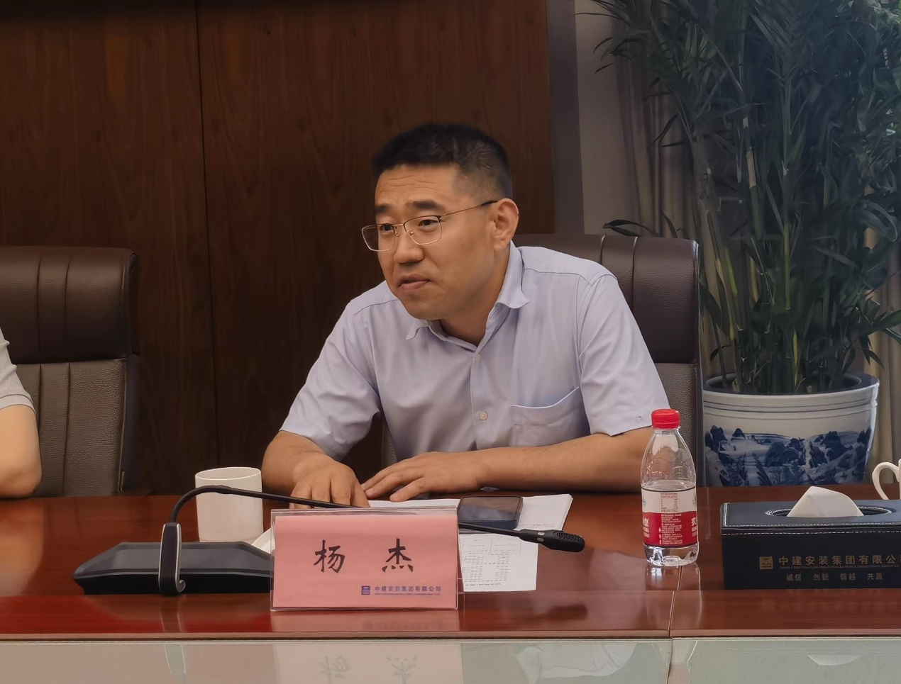 朱玉伟对樊小杰、杨杰一行的到来表示热烈欢迎,他详细介绍了中建安装集团近年来在企业党建、发展历程、科研创新、技术实力、人才引进和文化建设工作等方面的主要做法。他希望双方能建立长效机制,通过校企深入合作推动科研协作和协同育人,合力打造有特色、出实效的合作模式,为双方高质量发展注入新动能。吴文杰介绍了集团招聘条件和有关待遇,热情欢迎南航优秀学子加入中建安装集团。