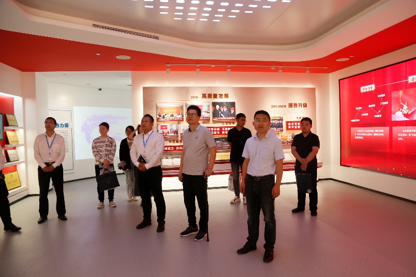 在座谈交流开始前,朱玉伟陪同一行人参观了中建集团发展成就史展览馆,详细了解企业发展进程、发展理念、战略定位、发展现状及产业布局等情况。