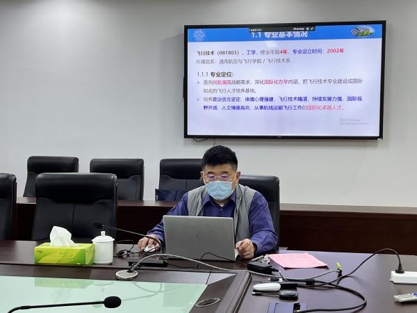 在正式入校考察前专家们进行了线上会议部署,确定考察具体流程和分工情况。在见面会环节,专业负责人丁松滨向考察组汇报了飞行技术专业20年的建设情况、问题与下一步建设部署,专家就专业发展的特色、课程建设、实验教学中心建设和学生双创工作提出质询和交流。