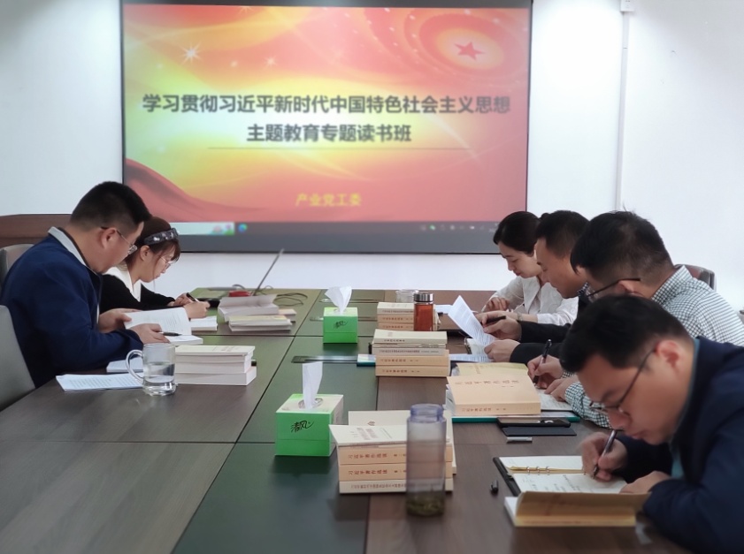 产业党工委领导班子坚持读原著学原文悟原理,采取领读领学、个人自学、主题党日、交流研讨等方式分阶段进行。首期学习期间,首先集体学习了习近平总书记在主题教育工作会议时的重要讲话,集体原原本本学习了二十大报告原文、《习近平著作选读》(第一卷、第二卷)、《习近平新时代中国特色社会主义思想专题摘编》、《习近平新时代中国特色社会主义思想学习纲要》、《论党的自我革命》、《习近平新时代中国特色社会主义思想的世界观和方法论专题摘编》、《习近平关于调查研究论述摘编》的部分篇目,并开展了交流研讨。