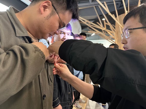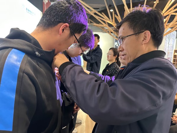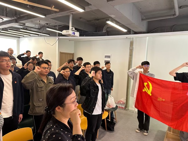 最后,教师党员们为即将转正的预备党员佩戴。在基础力学与测试系党支部书记唐静静的带领下,全体师生党员面向鲜红的党旗,紧握右拳,重温入党誓词,重忆入党初心。