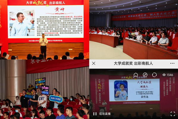 该奖项的评选为优秀学子提供了一个展示自我的平台,也为广大师生提供了一个共同学习、分享和交流的平台,通过毕业生们胸怀梦想、勤勉笃学、奋发求新的大学成就展示,为在校学生树立了榜样,引领更多学生见贤思齐、砥砺奋斗,感染和激励更多南航学子听党话、跟党走,踔厉奋发、爱国奋斗,立志做有理想、敢担当、能吃苦、肯奋斗的新时代好青年。
