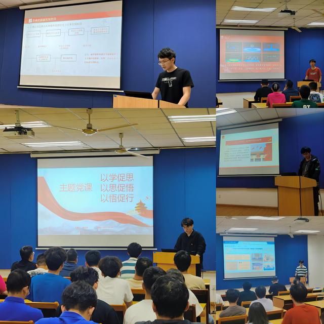随后由南工大计信学院本科支部的三名学生党员进行学习分享,刘嘉楠由北京冬奥会展开,描述了创新驱动和实施人才强国战略的重要意义。崔子洋介绍了自己在主题学习中的感悟与行动,强调要以学促思,以思促悟,以悟促行,将理论学习转化为个人行动的澎湃动力。蔡文豪提出了要以学促干强能力,学用结合增实效,用党的创新理论武装头脑、指导实践、推动个人的学习与工作。