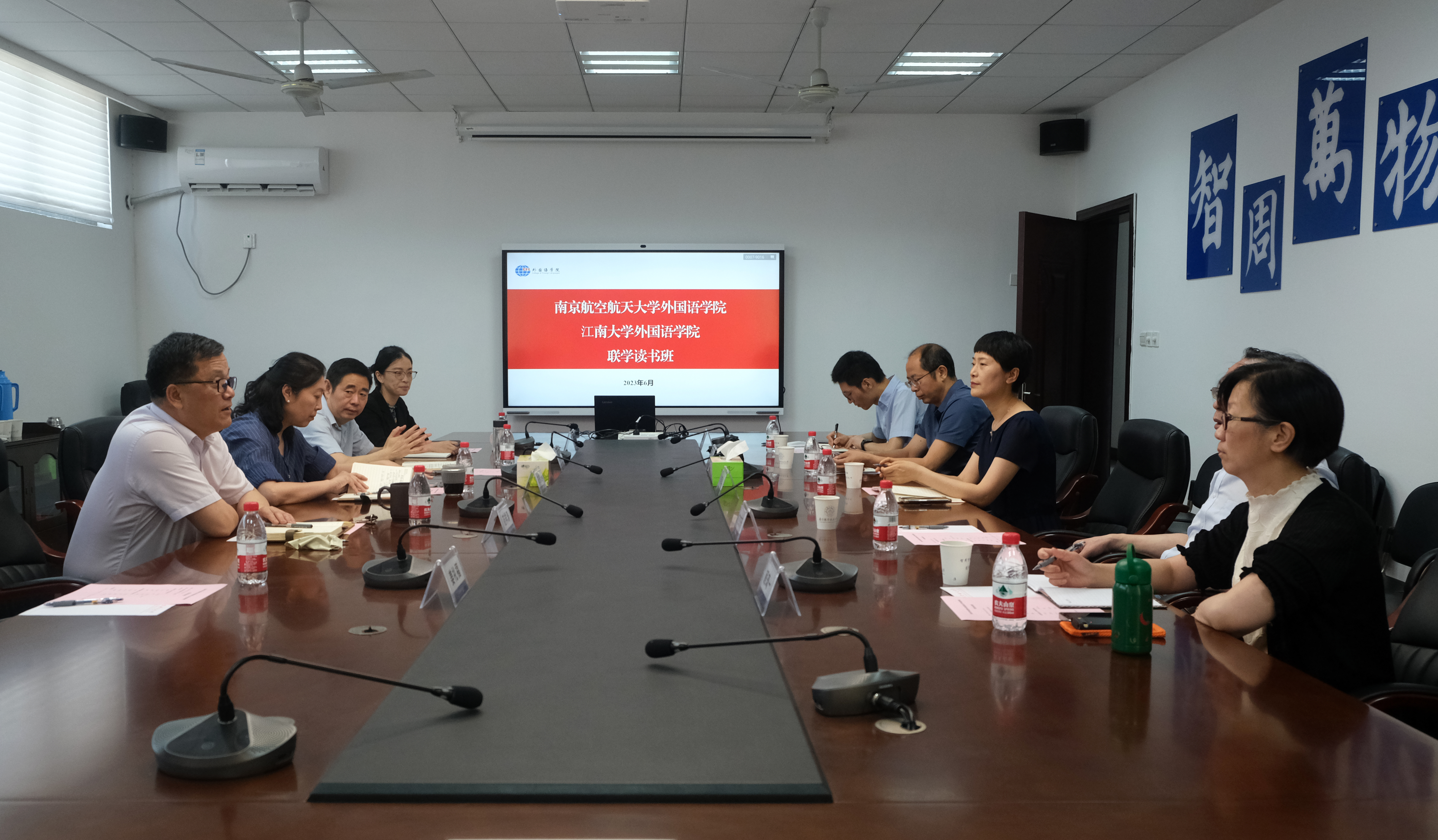 为持续贯彻落实习近平新时代中国特色社会主义思想主题教育要求, 6月2日上午,外国语学院与江南大学外国语学院开展党委理论中心组(扩大)联合学习。江南大学外国语学院党委书记李荣华、院长方文开及党委班子成员,外国语学院党委书记左彤云、院长范祥涛及党委班子成员出席会议。范祥涛担任主持。