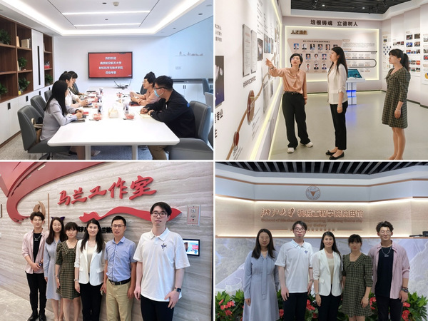在浙江大学,学院先后调研材料科学与工程学院、机械工程学院,与材料学院党委副书记王育萍及学工团队座谈交流,深入了解兄弟学院在思政教育、创新创业工作、研学空间建设等方面的特色做法,就学生党建和研究生教育管理进行探讨。随后,机械工程学院党委副书记俞磊陪同学院一行实地考察了马兰精神展厅,学习了马兰精神宣讲团、剧组、学生讲习所一体化育人体系建设的成功实践。庄晓舒等还参观了两学院院史馆,学习院庆系列活动举办和文化建设的经验。