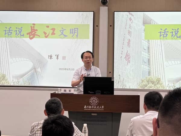 为深入学习贯彻党的二十大精神,推动主题教育走深走实,6月2日下午,南京图书馆馆长陈军教授应邀参加长空学院“润&致”读书文化节素养公开课,作题为“话说长江文明”的专场阅读讲座。长空学院常务副院长蒋彦龙、副院长张林、院长助理王瑞瑒及师生代表参加此次活动。