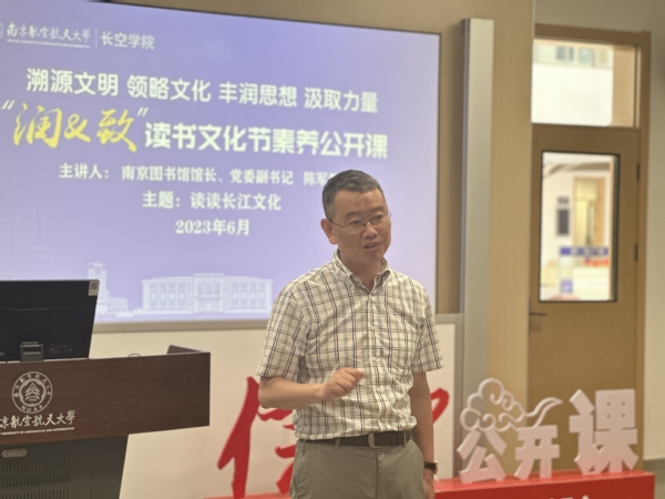 “润&致”读书文化节是长空学院深入学习贯彻党的二十大精神和学校第十七次党代会部署决策的重要举措,也是推动主题教育走深走实,引导学生“爱读书、读好书、善读书”的生动实践。本届读书文化节,长空学院与南京图书馆签署合作共建协议书,以优质资源共享、阅读基地共建为脉络,推动书香学院建设迈入新阶段。讲座举行当天,恰逢习近平总书记在文化传承发展座谈会上发表重要讲话,长空学院将持续以“溯源文明、领略文化、丰润思想、汲取力量”为主旨,深入开展“润&致”读书文化节,通过开展多种形式、内容丰富的阅读活动,深化学生对中华文明的理解和认识,引导学生“坚定文化自信、担当使命、奋发有为”,为建设中华民族现代文明贡献力量。