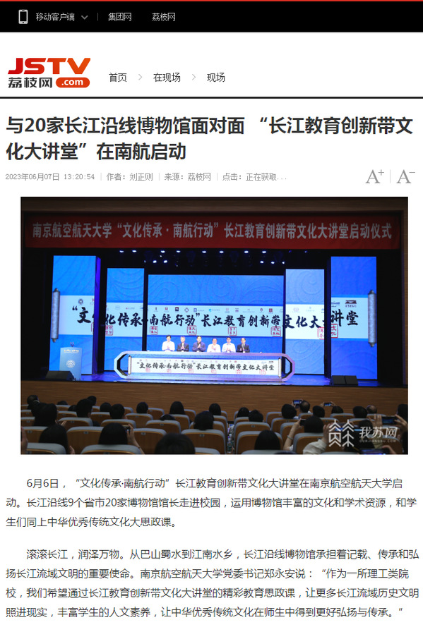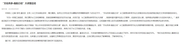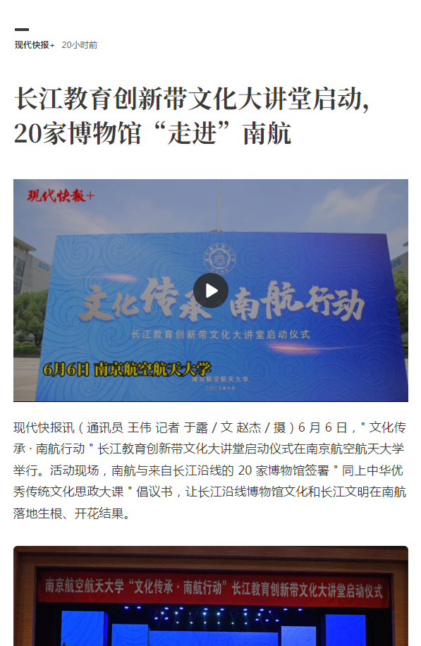 现代快报丨长江教育创新带文化大讲堂启动,20家博物馆“走进”南航