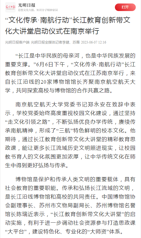 光明日报丨“文化传承·南航行动”长江教育创新带文化大讲堂启动仪式在南京举行