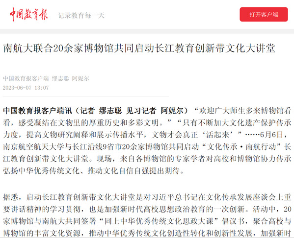 中国教育报丨南航大联合20余家博物馆共同启动长江教育创新带文化大讲堂