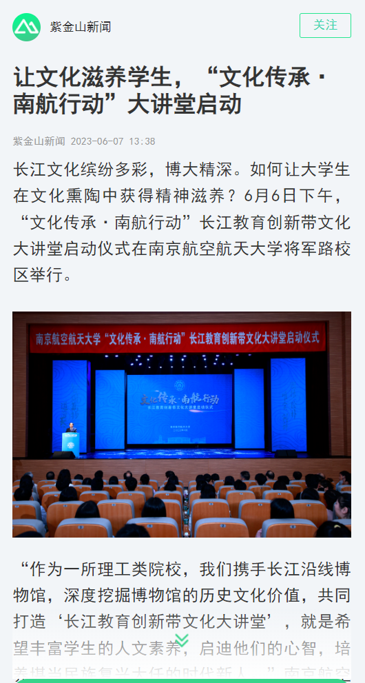 紫金山新闻丨让文化滋养学生,“文化传承·南航行动”大讲堂启动