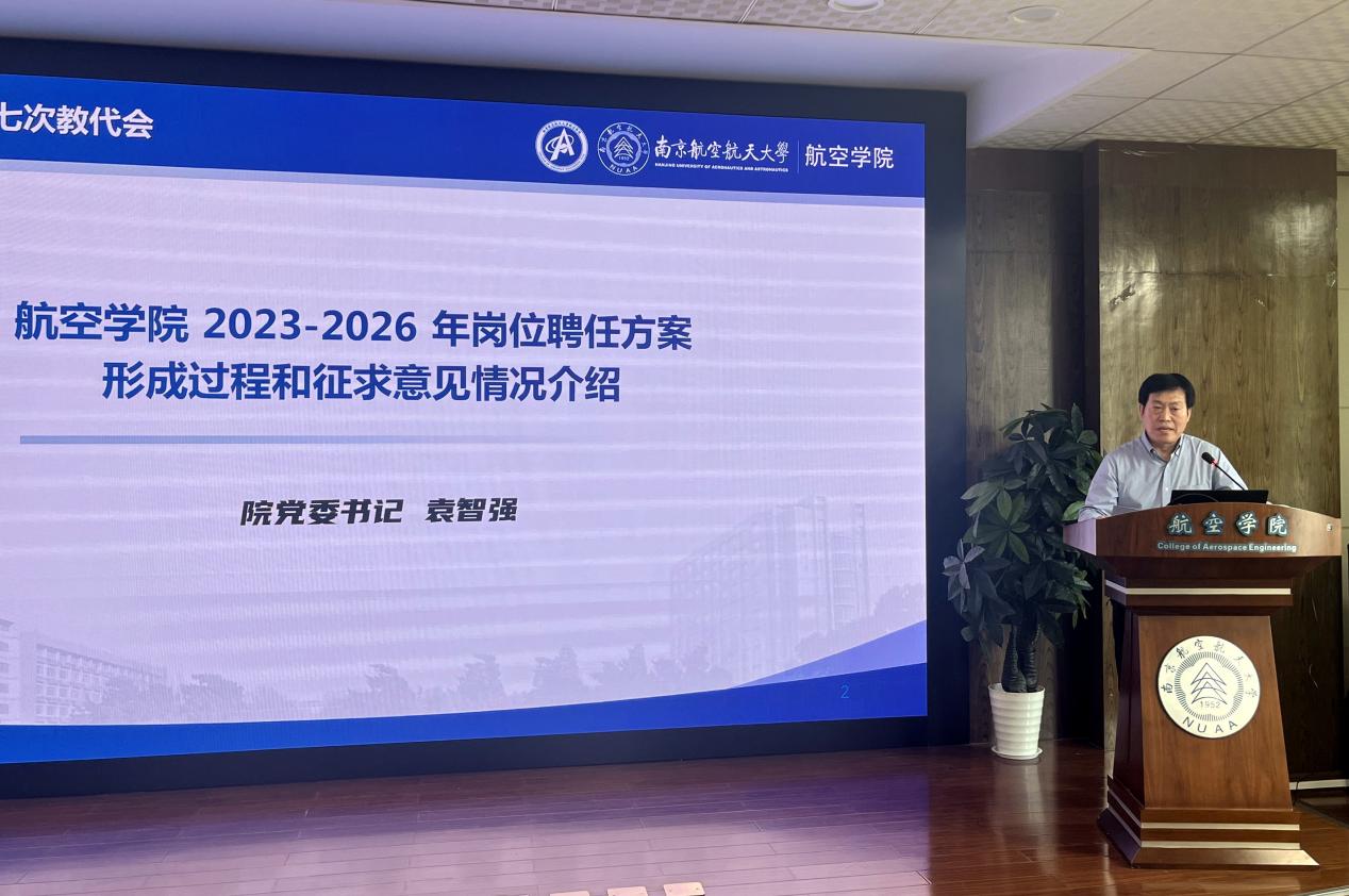 6月9日,航空学院召开五届七次教代会,就学院2023-2026年聘期岗位聘任方案进行了审议讨论。学院教代会代表参加会议。院工会主席杨杰主持会议。