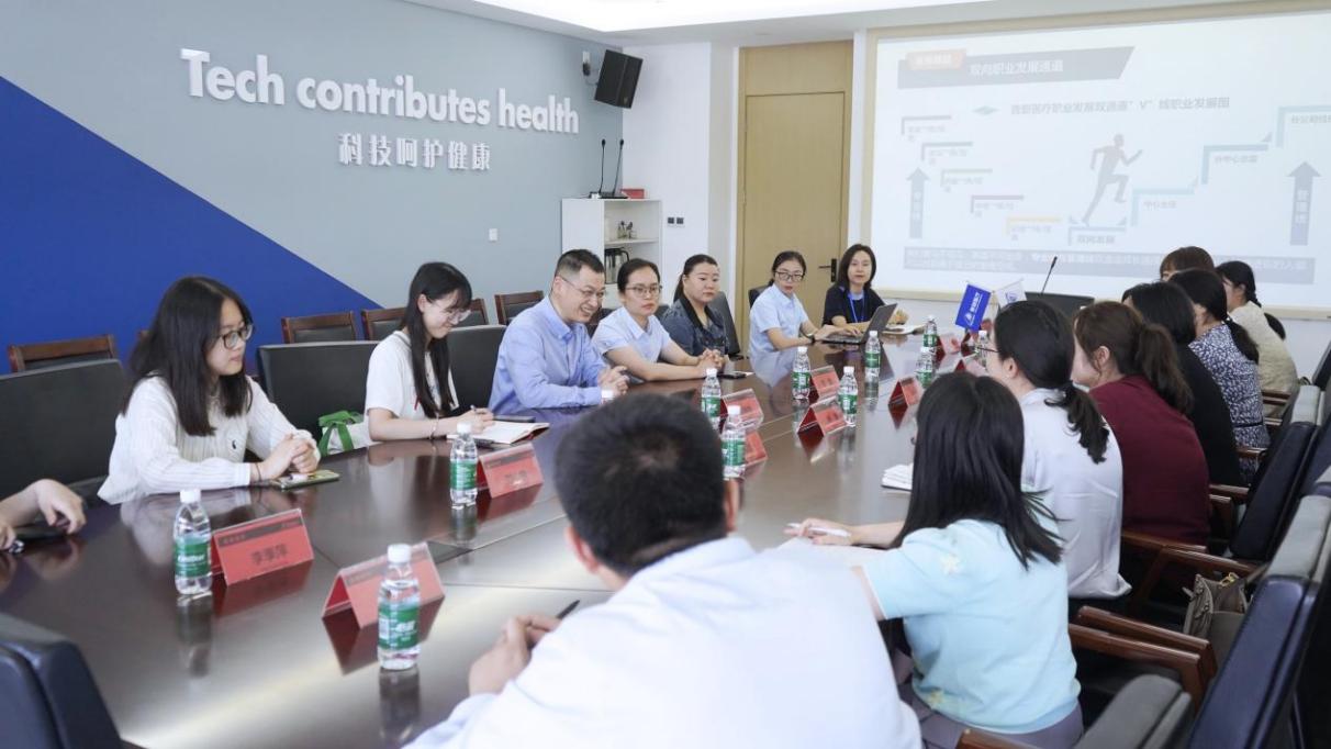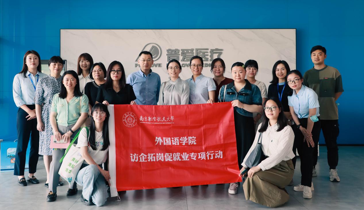 为进一步拓宽毕业生就业工作渠道,深化学校和用人单位的供需对接,搭建校企交流合作平台,6月6日,外国语学院联合江宁团区委赴南京普爱医疗设备股份有限公司走访调研。学院党委副书记吴科颖带队,学院团委书记李萍、教师代表王瑞暘、辅导员赵瑜瑶以及本硕3名学生代表参加调研。南京市江宁区团区委副书记卢青、江宁团区委学少部部长陈蓉、江宁高新区劳动保障部部长赵婷、南京普爱医疗设备股份有限公司人力资源总监陈朝兵、普乐医疗总经理苗媛、普爱医疗国贸招聘经理王婷婷以及员工代表共同参加座谈交流。