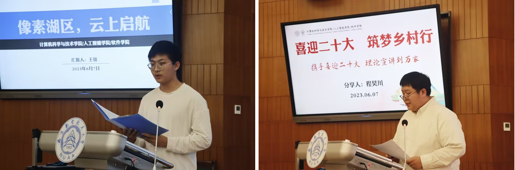 最后,“像素湖区,云上启航”和“喜迎二十大,筑梦乡村行”两个社会实践明星团队的负责人就项目筹建、人员配置和项目实施等方面,向同学们分享了开展社会实践的成功经验,鼓励大家结合兴趣特长和时事热点开展别开生面的社会实践活动。
