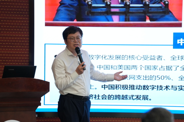 学习会上,上海流程制造科技创新研究院院长贺仁龙以“‘数字中国’与中华民族的伟大复兴”为主题作专题辅导报告,从《数字中国规划》背景与意义、目标与框架、方向与内容三个方面深入解读了从网络强国到数字中国建设的整体布局规划。