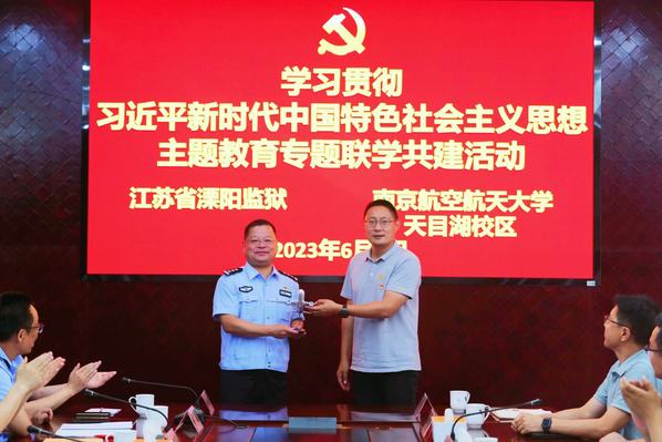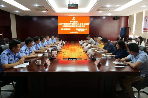 6月9日下午,我校天目湖校区党工委赴江苏省溧阳监狱开展学习贯彻习近平新时代中国特色社会主义思想主题教育专题联学共建活动。我校天目湖校区党工委理论学习中心组全体成员、党支部书记代表、支部委员代表参加活动,活动由江苏省溧阳监狱政治处副主任徐继前主持。