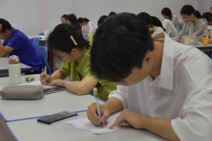 下午三点,高考英语考试开始的同时,同学们也迎来了属于自己的特殊考试。同学们领取答题卡入座,几道高中综合测试题把同学们带入熟悉的场景。当自己高中母校的照片、曾经的高中学习生活以视频形式出现在屏幕上时,同学们的思绪纷纷回到了曾经的那段拼搏岁月。