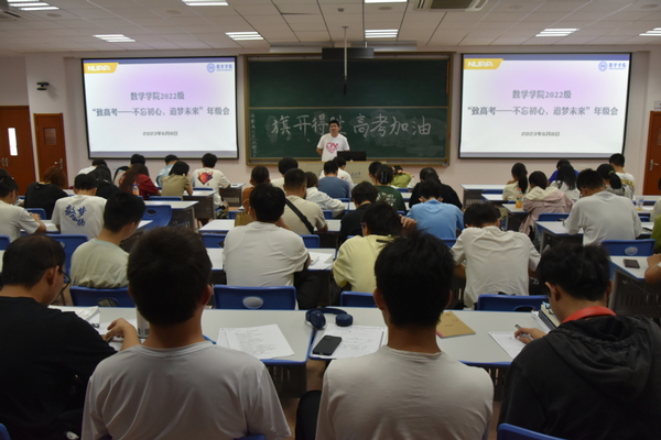 为激励大一同学们不忘高考奋斗目标和拼搏精神,在大学里继续保持积极昂扬奋进的精神风貌,6月8日,数学学院以高考为契机举办“致高考——不忘初心,追梦未来”主题年级会。2022级全体本科生参加活动,辅导员陈越主讲。