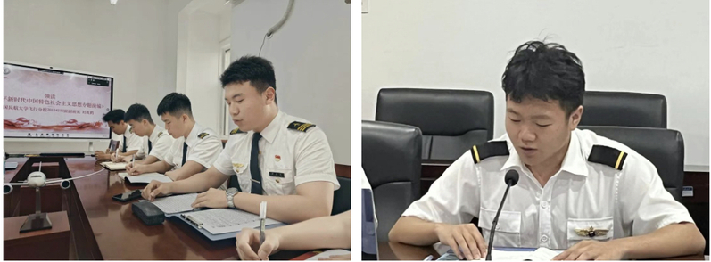 中国民航大学飞行分校20134110班副班长刘成鹤、通用航空与飞行学院2021107班班长张虎分别领学《习近平新时代中国特色社会主义思想专题摘编》与《习近平关于调查研究论述摘编》有关内容。全体参学人员共同读原著、学原文、悟原理,多思多想、学深悟透,努力把习近平新时代中国特色社会主义思想转化为坚定理想、锤炼党性和指导实践的强大力量。